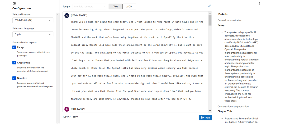 Conversation summarization recaps and segments long meetings into timestamped chapters.