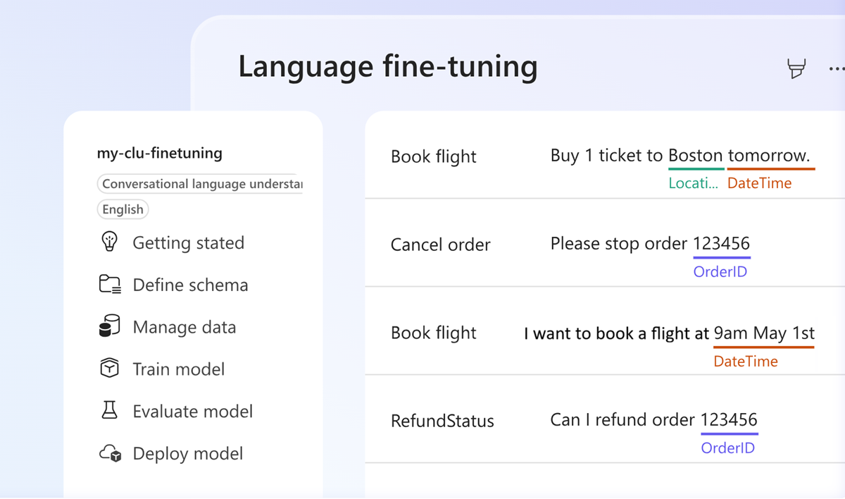 Conversational language understanding (CLU) enables users to build custom natural language understanding models to predict the overall intention of an incoming utterance and extract important information from it.