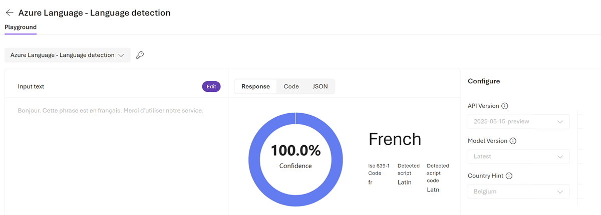 | Detect the language that a text was written in. | Unstructured text | Language detection | |