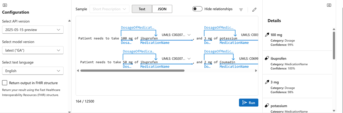 | Extract medical information from clinical/medical documents, without building a model. | Unstructured text | Text analytics for health |