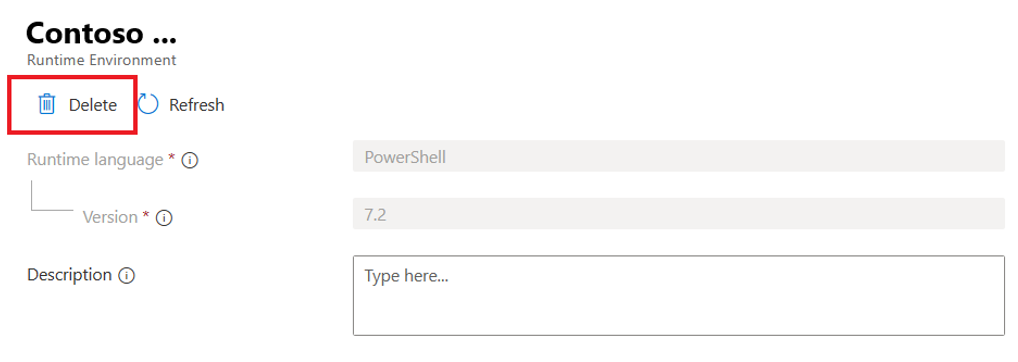 To delete the Runtime environment from the Automation account, follow these steps: