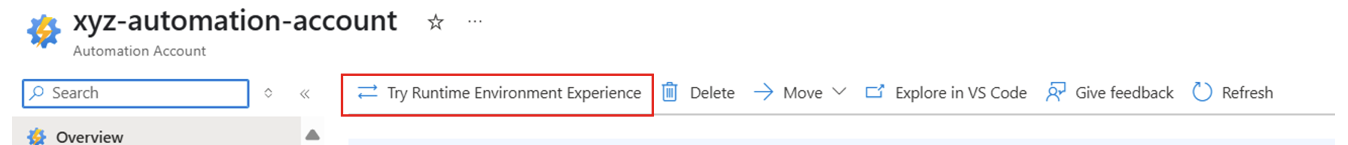 In the Overview page, select Try Runtime Environment experience, if not already in the new experience.