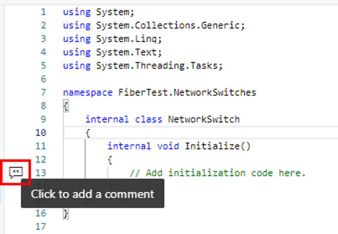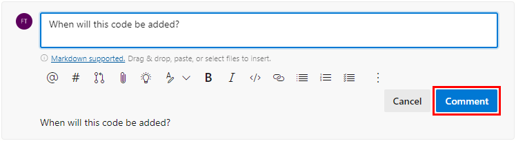 to open an inline comment box. You can also select multiple lines and then select the comment button that appears when you hover over those lines.Enter your comment in the comment box and choose Comment.
