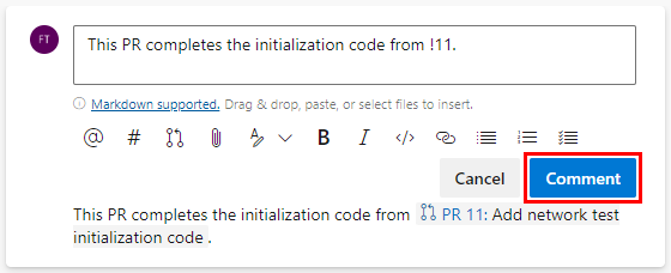 PR authors and reviewers can communicate with each other by adding and responding to PR comments. When you review a PR, use comments to point out issues with the proposed changes, suggest changes, and respond to previous comments. Aim for constructive feedback that's precise and easy to understand. Address recipients directly by using their @username. Reference work items by using #workitemID and other PRs by using !pullrequestID. Sometimes, PR authors create comments for themselves for documentation purposes.