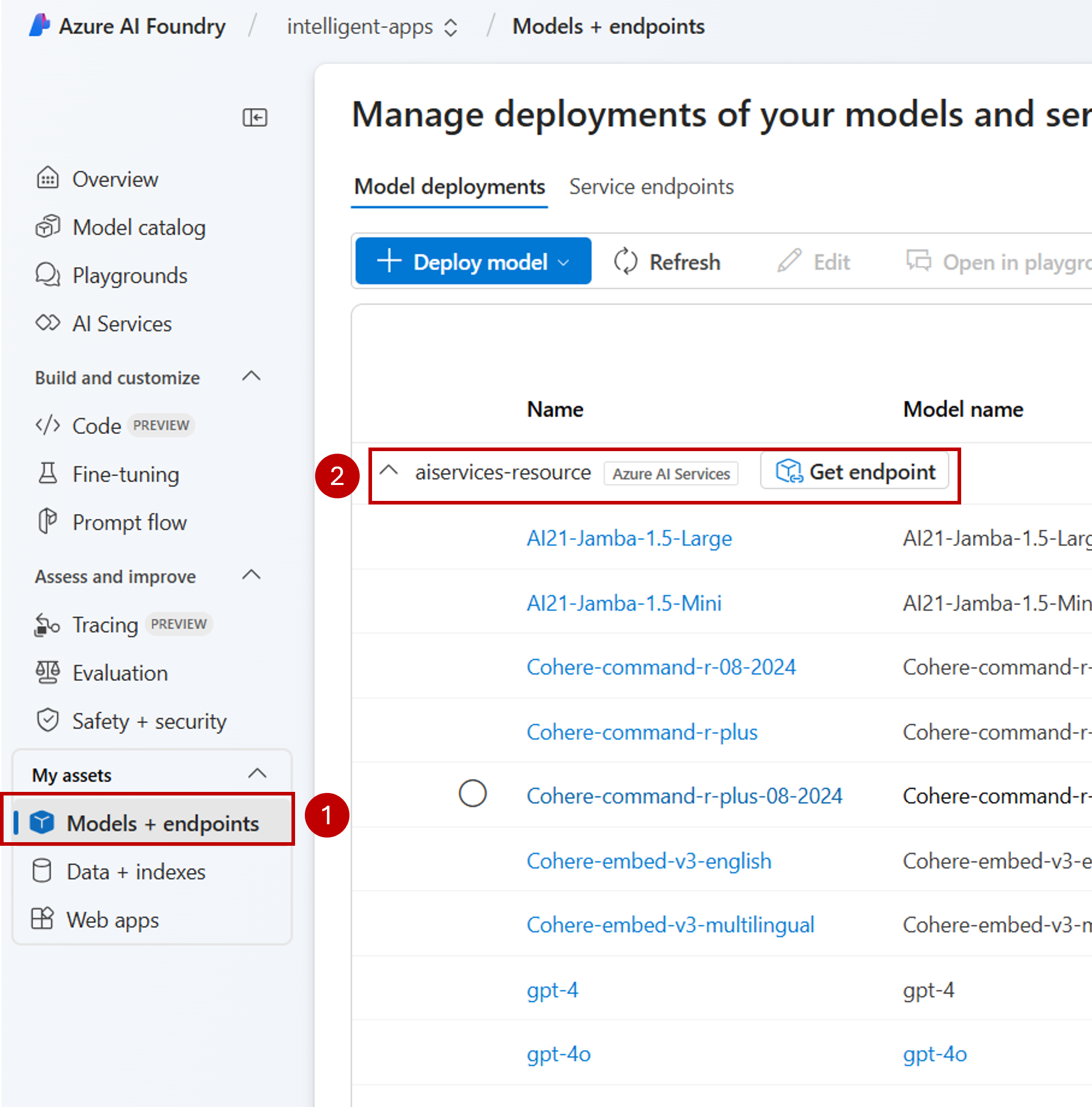 Once the models are deployed under Foundry, you can upgrade your code to use the Foundry Models endpoint. The main difference between how serverless API deployments and Foundry Models work resides in the endpoint URL and model parameter. While serverless API deployments have a set of URI and key per each model deployment, Foundry Models has only one for all of them.