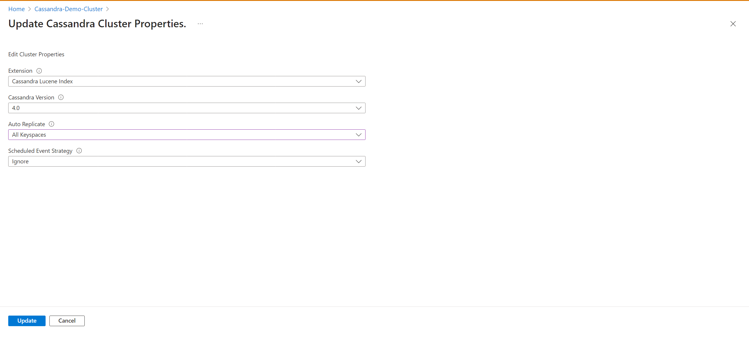 AllKeyspacesto change the replication settings in your keyspace schema and start the migration process to the Azure Managed Instance for Cassandra cluster.Enable the