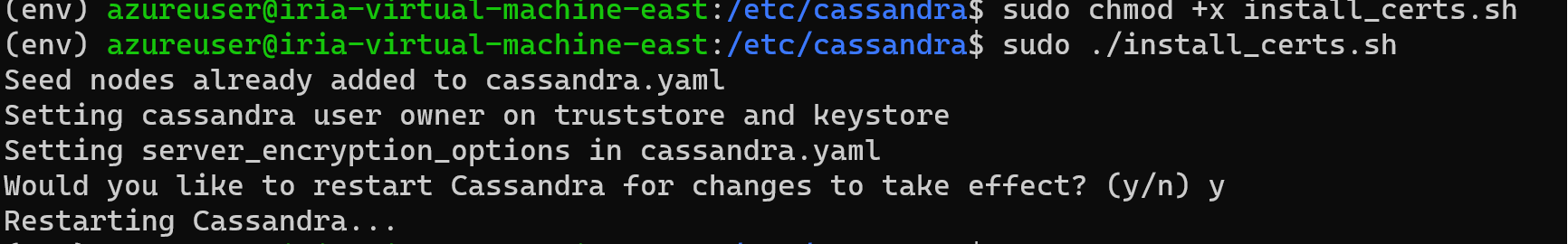 /etc/cassandra/folder, runsudo ./install_certs.sh.After Cassandra is finished restarting on all nodes, check