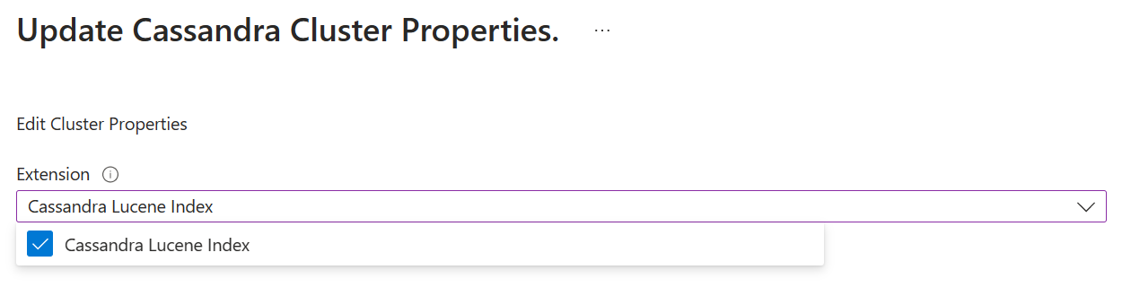 Deploy an Azure Managed Instance for Apache Cassandra cluster. You can do this step via the Azure portal. Lucene indexes are enabled by default when clusters are deployed from the portal. If you want to add Lucene indexes to an existing cluster, select Update on the portal Overview pane. Select Cassandra Lucene Index, and then select Update to deploy.
