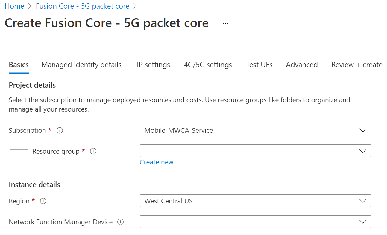 Find the Fusion Core – 5G packet core offer in Marketplace and click Create to begin creating your network function.