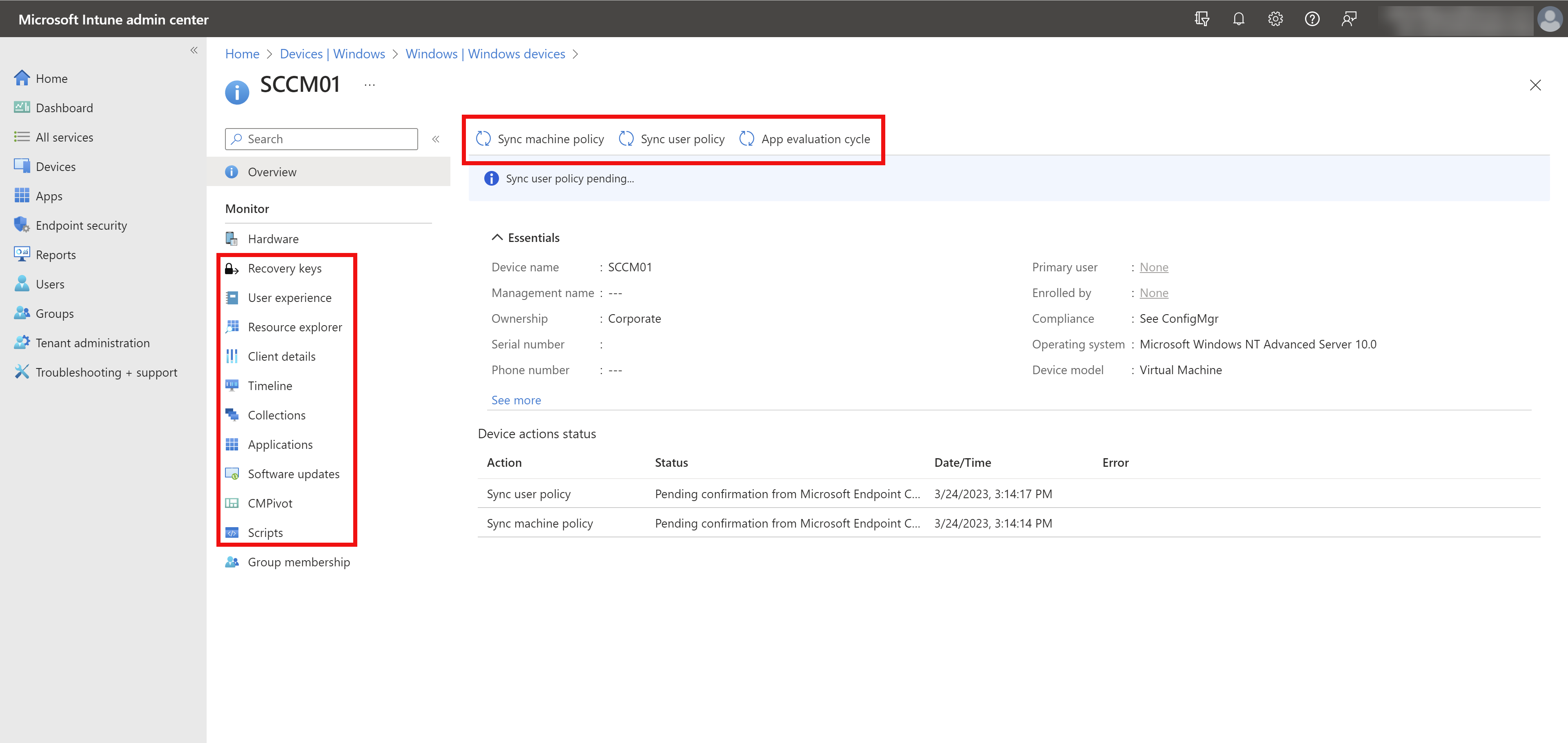 When you upload your clients to Microsoft Intune admin center, you can take CM Client specific actions like sync machine policy, sync user policy and sync app evaluation cycle. Apart from the actions, some of the features you may want to use include: