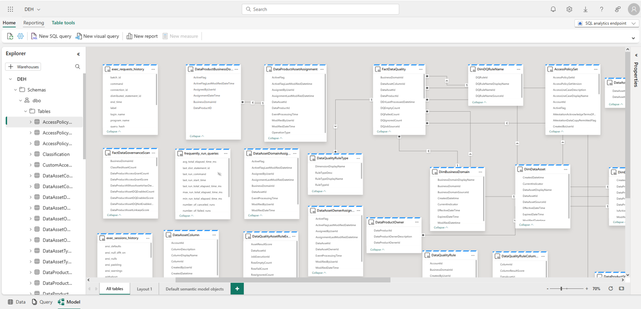 - Switch to SQL analytics endpoint page from the Lakehouse page.