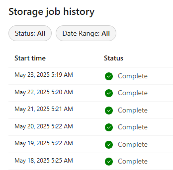 You can browse Job history by clicking Job history icon located in the self-serve analytics page. You can filter job status Complete or Failed for a date range.