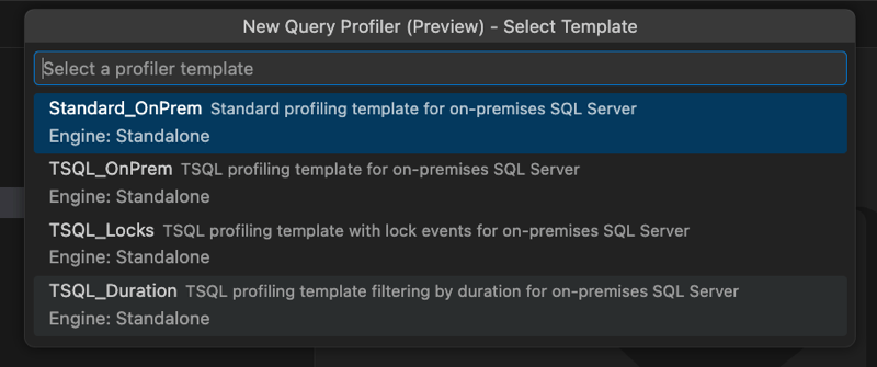 .xelfiles in a read-only Profiler grid. - Automatically select the appropriate template for Azure SQL Database targets (