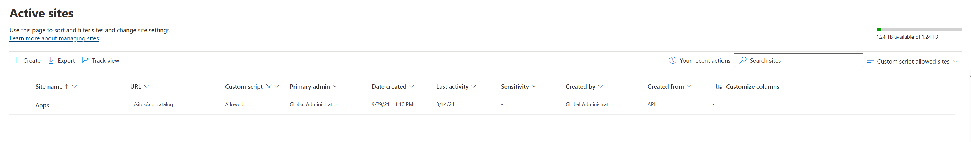 In the SharePoint admin center, under Sites, select Active sites.