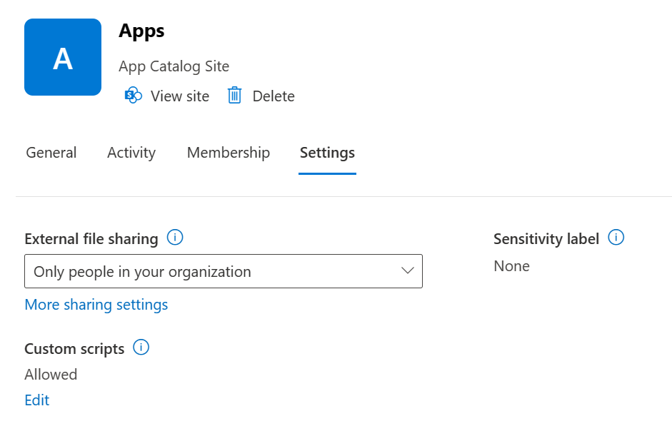 Change custom script settings for a SharePoint site