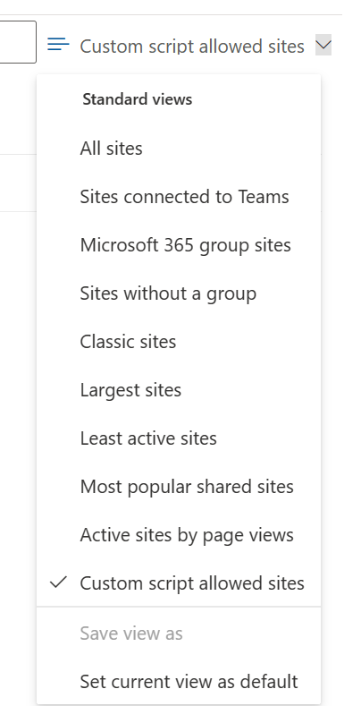 Use the SharePoint admin center to identify SharePoint sites that are configured to allow custom scripts.