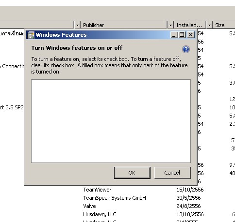 กลับมายังคำถามของคุณ ที่ได้เข้าไปที่หน้าต่าง Turn Windows features on or off เเล้ว เเต่ไม่มีลิสต์ของโปรแกรมใดๆ อยู่เลยนั้น คุณอาจลองแก้ไขปัญหาดังกล่าว โดยใช้ขั้นตอนพื้นฐาน ดังต่อไปนี้ นะครับ;