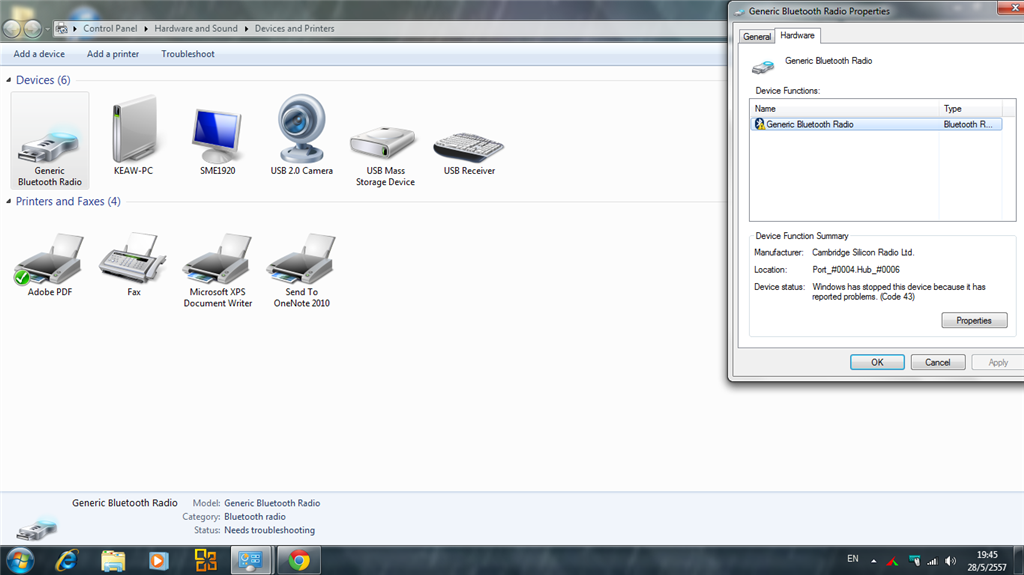 กลับมายังคำถามของคุณ ที่ได้เเจ้งมายังทีมงานของเราว่า ได้มี error code 43 จากอุปกรณ์ USB Adapter นั้น ลองเเก้ปัญหาดังกล่าว โดยลองใช้ Hotfix Download Available ตาม KB 982046 ตามลิงค์ข้างล่างนี้ นะครับ;