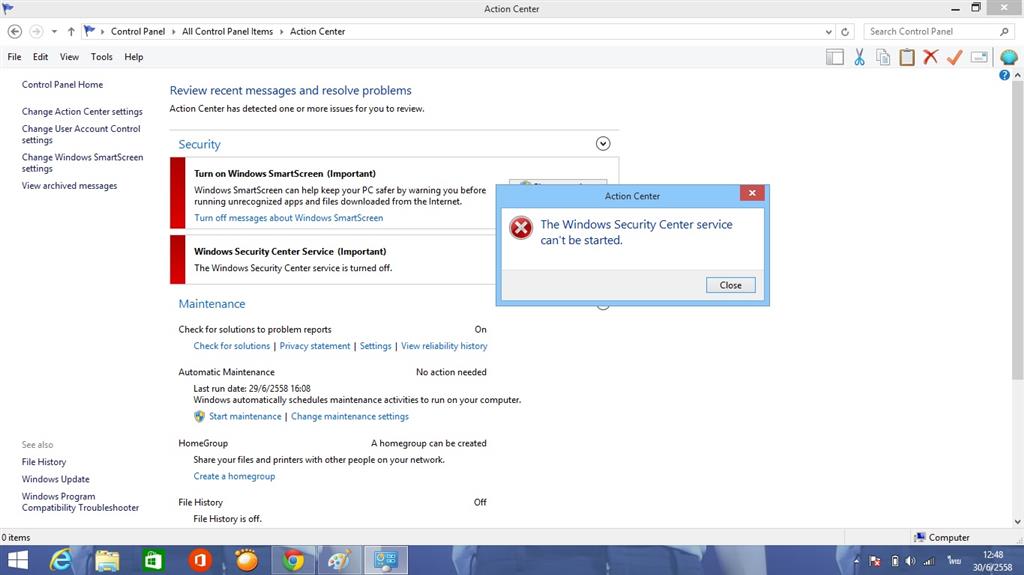 4.คลิ๊กที่หัวข้อ Action Center