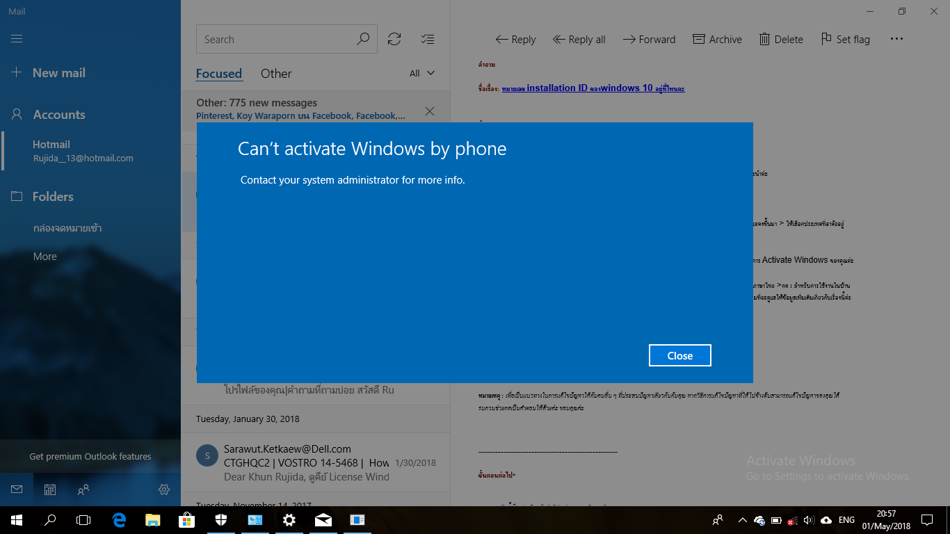 เมื่อคุณมี Installation ID เเล้ว ทางเราเเนะนำให้คุณติดต่อฝ่าย Activate ของ Microsoft โดยตรงเพื่อช่วยในการ Activate Windows ของคุณค่ะ