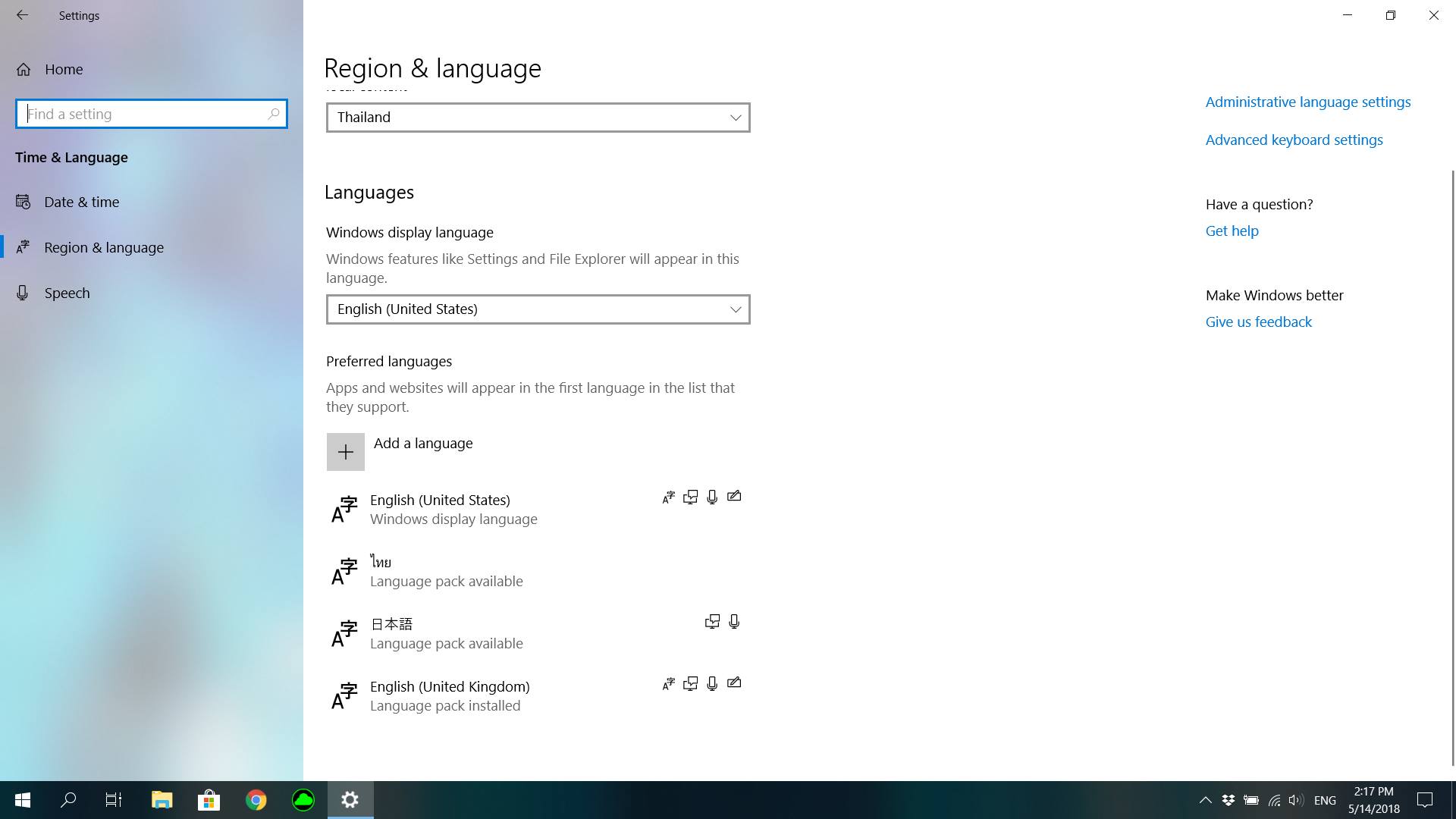 Window10 Remove ภาษาออกไม่ได้