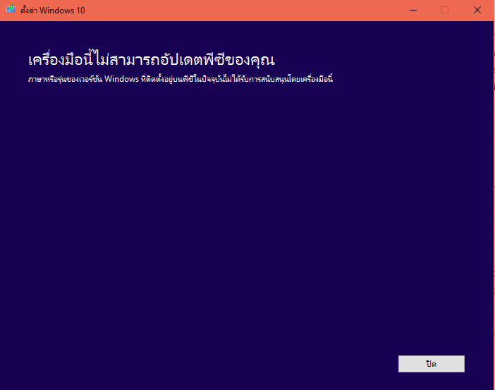 สาเหตุของปัญหาดังกล่าวเกิดจากเครื่องมือดังกล่าวไม่สนับสนุนภาษาของคอมพิวเตอร์ของคุณค่ะ เพื่อเเก้ปัญหาเบื้องต้น ทางเราเเนะนำให้คุณสร้างเครื่องมือสื่อการติดตั้งใหม่โดยดาวน์โหลดจากเว็บไซต์ Microsoft โดยตรงจากลิงค์นี้ค่ะ (เมื่อเปิดลิงค์ดังกล่าวให้คลิกที่ “ดาวน์โหลดเครื่องมือทันที”นะคะ) จากนั้นให้ลองติดตั้งการอัพเดทอีกครั้งนะคะ
