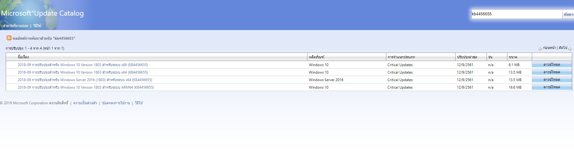 ทางเราเเนะนำให้ดาวน์โหลด SSU เวอร์ชั่นลาสุด (KB4456655) ที่ตรงกับเวอร์ชันของ Windows จากลิงค์นี้ค่ะ เมื่อทำการติดตั้งเสร็จสิ้น ให้ Restart คอมพิวเตอร์จากนั้นให้ตรวจสอบการอัพเดทอีกครั้งค่ะ หากปัญหายังเป็นเหมือนเดิม ทางเราเเนะนำให้ทำตามวิธีที่ 2
