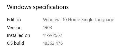 2. ไม่ทราบว่าคุณใช้ Windows 10 Build เวอร์ชั่นใดคะ (คุณสามารถตรวจสอบ OS Build โดยไปที่ Settings > System > About > ให้ดูที่ OS build ค่ะ)