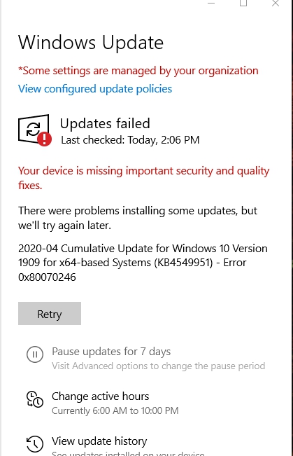สำหรับปัญหาที่คุณแจ้งว่าไม่สามารถทำการ Update Windows ได้นั้น ทางเราต้องขออภัยมา ณ ที่นี้ด้วยครับ สำหรับข้อความข้อผิดผลาดแจ้งว่า Some settings are managed by your organization นั้นหมายถึง ฝ่ายไอทีหรือฝ่ายองค์กรของคุณได้จำกัดการตั้งค่าบางอย่างหรือการใช้งานบางอย่างไว้ครับ จึงทำให้ไม่สามารถใช้งานในส่วนนี้ได้ครับ