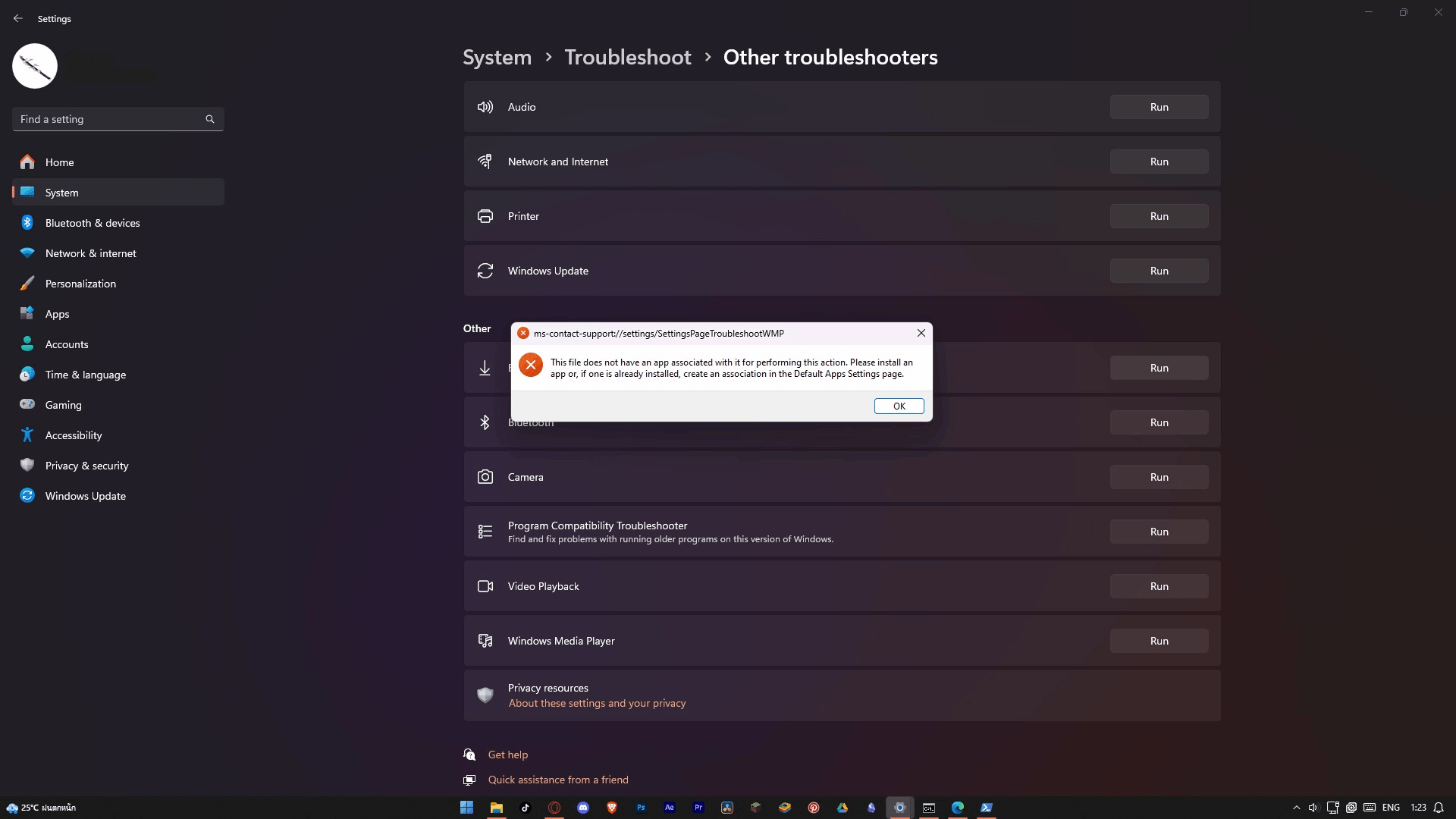 ค้นหาและตรวจสอบให้แน่ใจว่าแอปพลิเคชันเริ่มต้นสําหรับประเภทไฟล์ MP3, MP4, PNG และ JPG ได้รับการตั้งค่าอย่างถูกต้องให้เปิดด้วยโปรแกรมเล่นและโปรแกรมดูรูปภาพที่เกี่ยวข้อง (เช่น Windows Media Player หรือ Photo Viewer)
