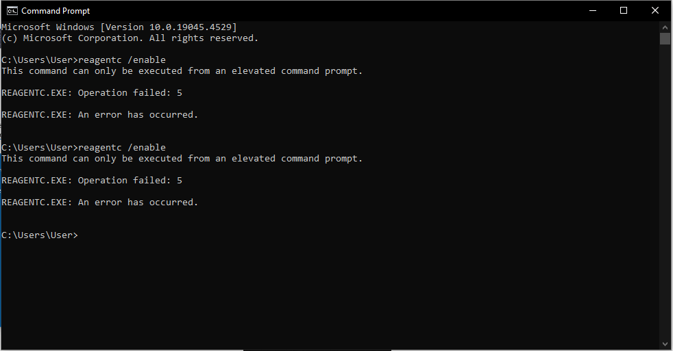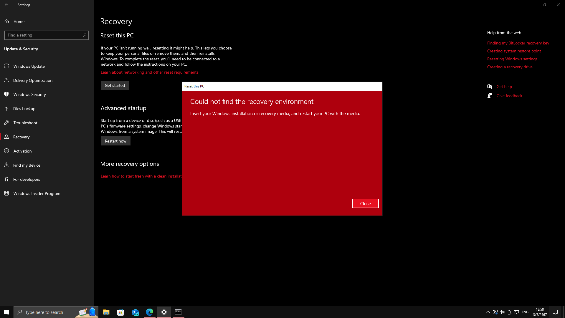 ข้อผิดพลาดนี้จะปรากฏขึ้นเมื่อสภาพแวดล้อมการกู้คืนถูกปิดใช้งานหรือเสียหาย
