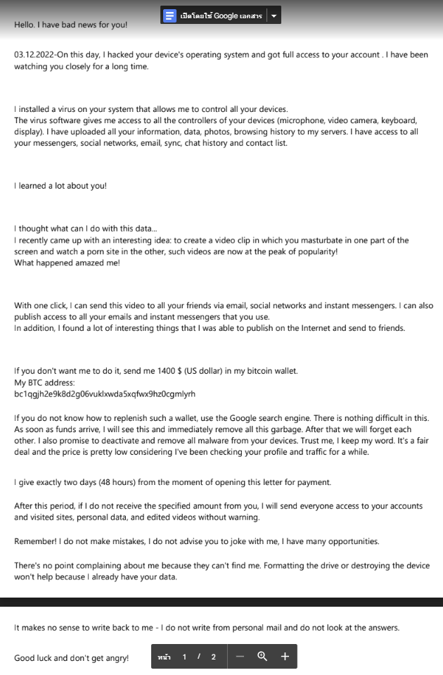 ขอขอบคุณสําหรับการตอบสนองของคุณ ใช่ฉันได้แปลแล้วและใช่มันได้รับการยืนยันว่าเป็นอีเมลหลอกลวง โปรดรายงานว่าเป็นอีเมลฟิชชิ่ง: