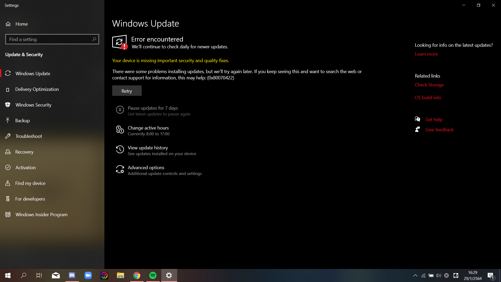 สำหรับปัญหาที่คุณแจ้งว่าไม่สามารถ Update Windows ได้เนื่องจากข้อผิดพลาด Your device is missing important security and quality fixes นั้น ทางเราต้องขออภัยมา ณ ที่นี้ด้วยครับ โดยทั่วไปเเล้ว Windows 10 สามารถอัพเดทได้อย่างปกติครับ สาเหตุที่ทำให้คุณไม่สามารถอัพเดทอาจเกิดจากข้อผิดพลาดที่เกี่ยวกับ Software หรือมีบ้างไฟล์ของระบบเสียหาย ทำให้ส่งผลกระทบต่อระบบคอมพิวเตอร์ครับ เพื่อแก้ปัญหาดังกล่าว ทางเราแนะนำให้แก้ปัญหาการอัพเดทโดยการเรียกใช้ตัวแก้ไขปัญหาของ Windows Update ซึ่งวิธีนี้สามารถตรวจหาข้อผิดพลาดของระบบเเละเเก้ไขข้อผิดพลาดโดยอัตโนมัติครับ คลิกที่นี่