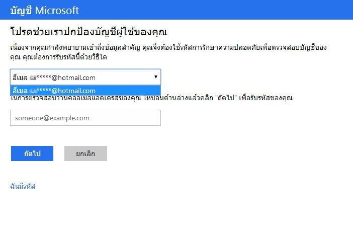 อีเมล์ติดต่อกลับ ขอให้คุณป้อนอีเมล์ที่ต่างจากบัญชีอีเมล์ที่ประสบปัญหาของคุณค่ะ) เเละเมื่อคุณผ่านการตรวจสอบความเป็นเจ้าของบัญชี ทางเราจะดำเนินการส่งลิ้งค์การตั้งค่ารหัสผ่านใหม่ไปยังอีเมล์ติดต่อกลับของคุณเพื่อให้คุณเปลี่ยนรหัสผ่าน เเล้วคุณจะสามารถลงชื่อเข้าใช้งานบัญชีของคุณได้ตามปกติ พร้อมทั้งอีเมล์ติดต่อกลับของคุณจะถูกเพิ่มเป็นอีเมล์สำรองใน"ข้อมูลรักษาความปลอดภัย" ของคุณโดยอัตโนมัติค่ะ