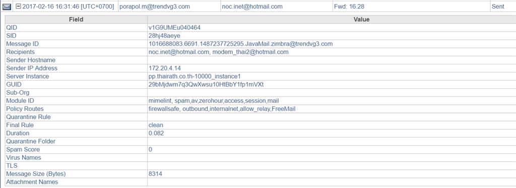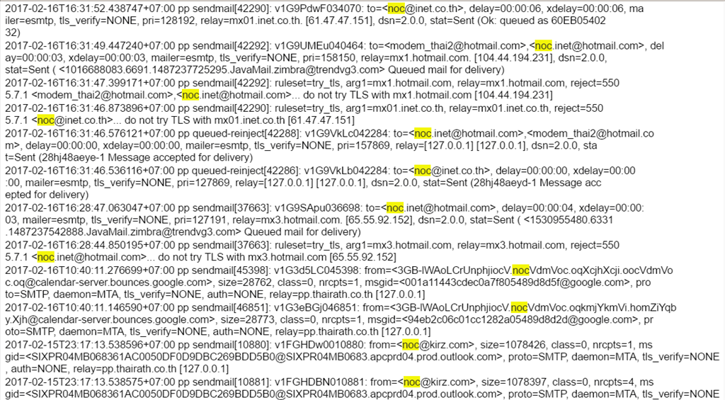 2017-02-17T08:55:18.105234+07:00 pp sendmail[2706]: v1H1tF6H002704: to=<modem******@hotmail.com>, delay=00:00:03,
