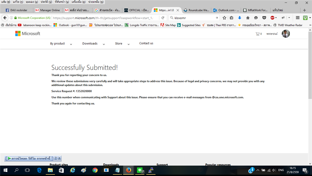 ขอบคุณสำหรับการติดต่อฝ่ายสนับสนุน Microsoft Online Service ค่ะ