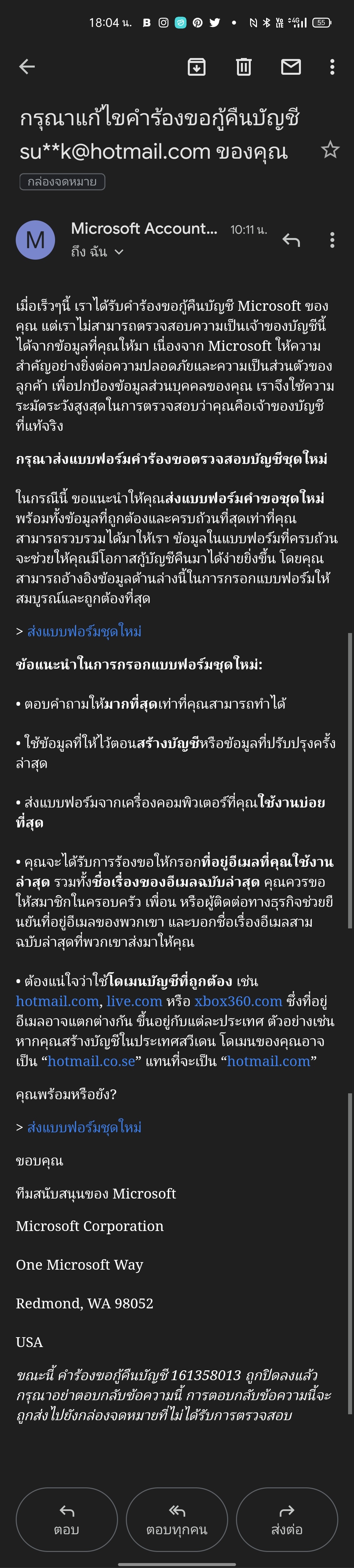 ฉันเข้าใจถึงความยากลําบากในการพยายามกู้คืนบัญชี จากสิ่งที่คุณอธิบายไว้ดูเหมือนว่าคุณได้ผ่านแบบฟอร์มการกู้คืนบัญชีออนไลน์แล้วซึ่งปัจจุบันเป็นรูปแบบการกู้คืนเดียวที่มีอยู่และนี่เป็นไปโดยอัตโนมัติอย่างสมบูรณ์ หมายความว่า ไม่มีเจ้าหน้าที่ฝ่ายสนับสนุนจาก Microsoft ที่สามารถกู้คืนหรือตั้งค่าบัญชีผู้ใช้ใหม่ให้คุณได้