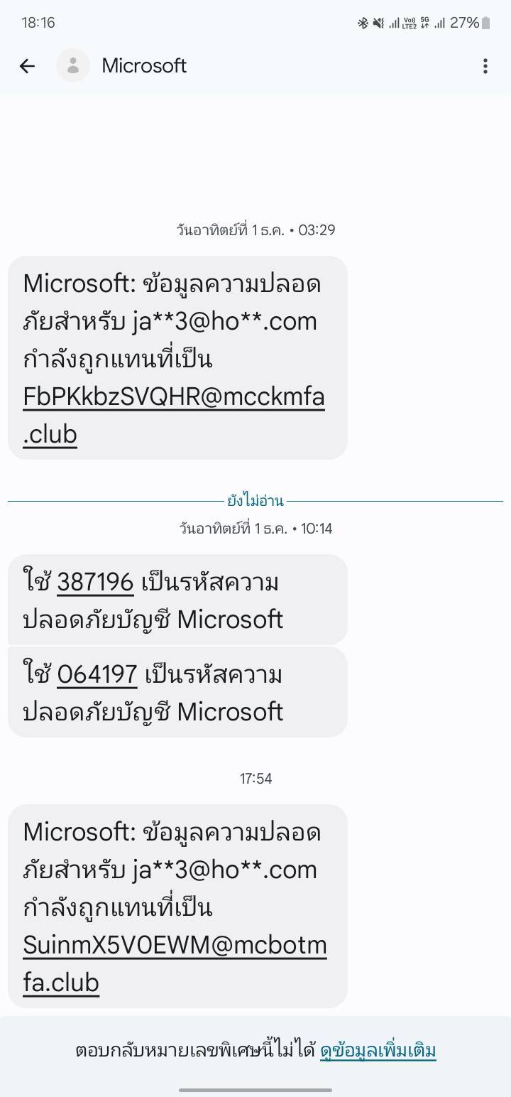 2025-05-28T08:52:52+00:00 เข้าถึงบัญชีได้ปกติไม่มีปัญหาอะไรแต่ยังมีข้อความขอ one time password ส่งมาอยู่ตลอดเวลาทุกวัน มีการนำอีเมลไปใช้สมัคร account ต่างๆอยู่เป็นประจำเช่น uber เช่นเว็บไซต์ของร้านค้าในสิงคโปร์