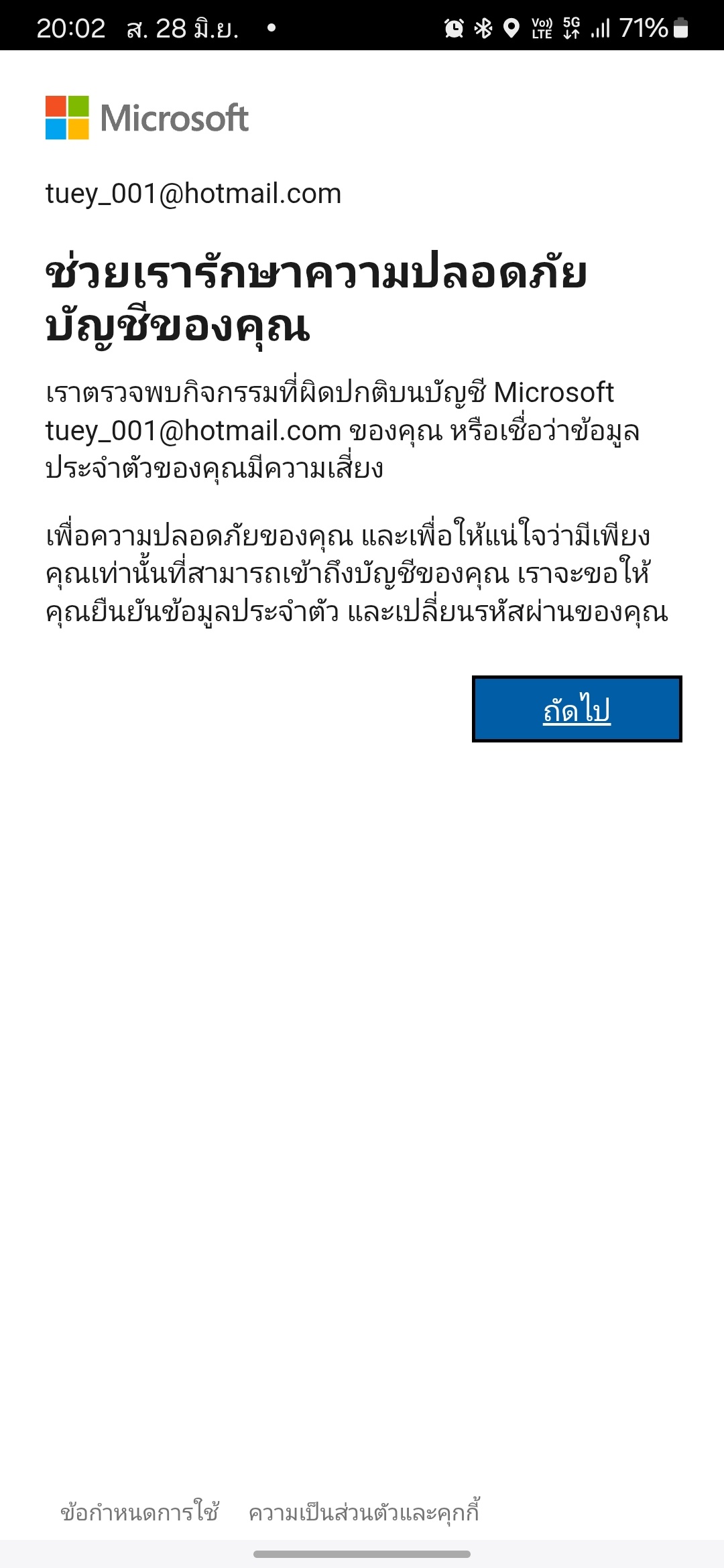คุณสามารถลองปลดบล็อคก่อนได้ ไปที่ https://support.microsoft.com/account-billing/a... แล้วคลิก "ลงชื่อเข้าใช้"