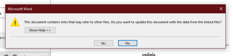 WORD 2016 เปิดไฟล์ตัวนึงไม่ได้ เมื่อเปิดจะขึ้น This Document Contains links that may refer to other files และจะปิดตัวเองลงดื้อๆเลย