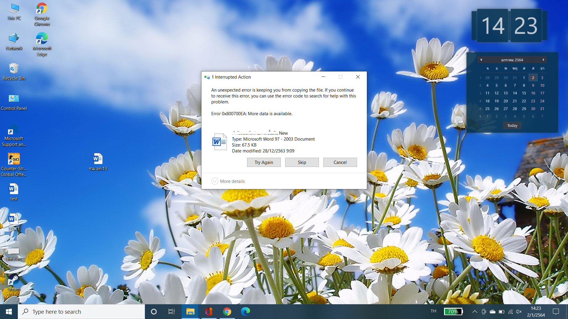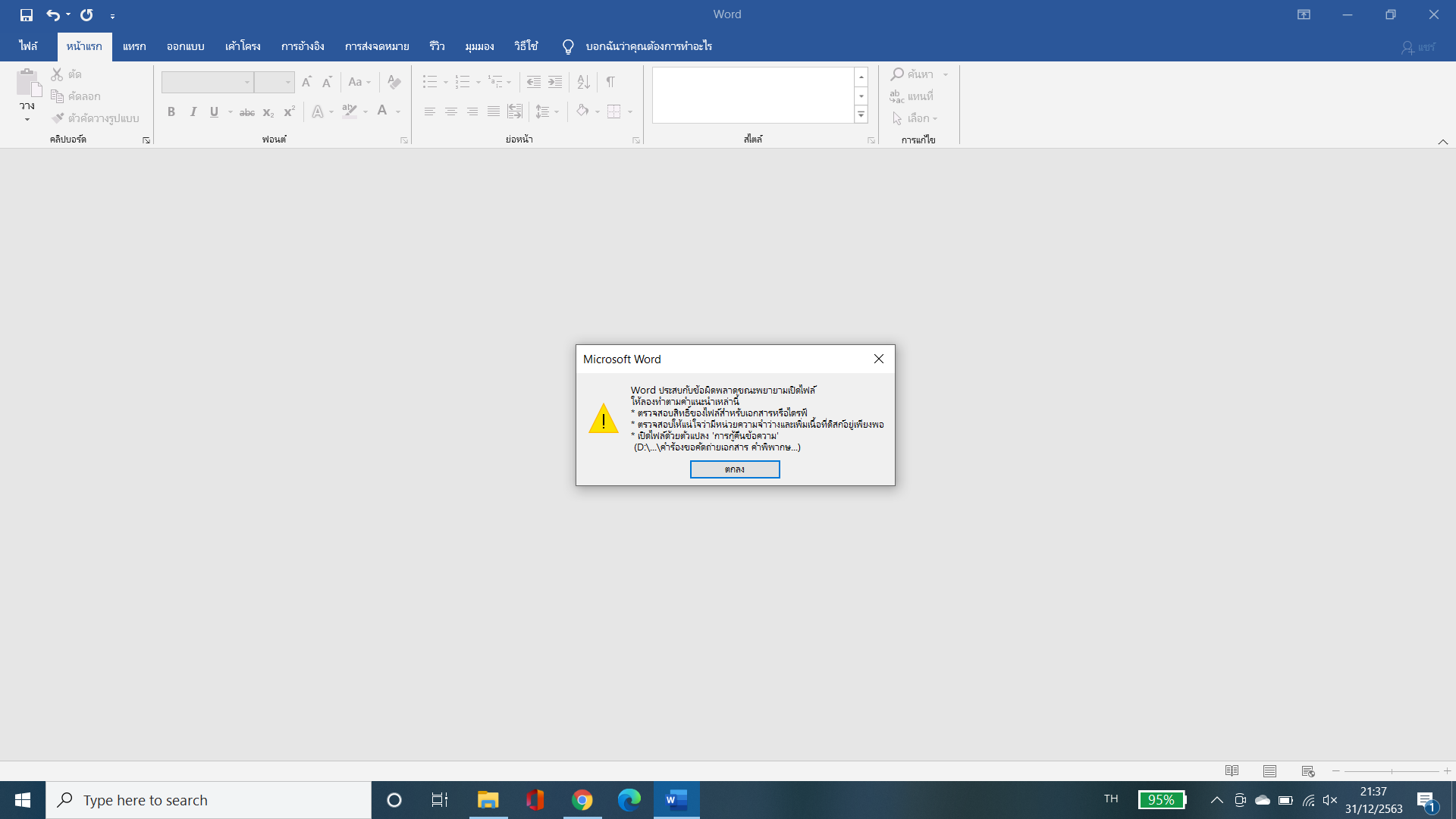 สำหรับปัญหาการเปิดไฟล์ Word นั้น ไม่ทราบว่าไฟล์ดังกล่าวเป็นไฟล์ Original หรือไฟล์ที่คุณได้รับหรือเปิดจาก cloud ค่ะ และไม่ทราบว่าหากคุณลองทำการสร้าง copy file และบันทึกใหม่โดยบันทึกไปยังโฟลเดอร์อื่นๆ ปัญหาประสบเหมือนเดิมหรือไม่ค่ะ