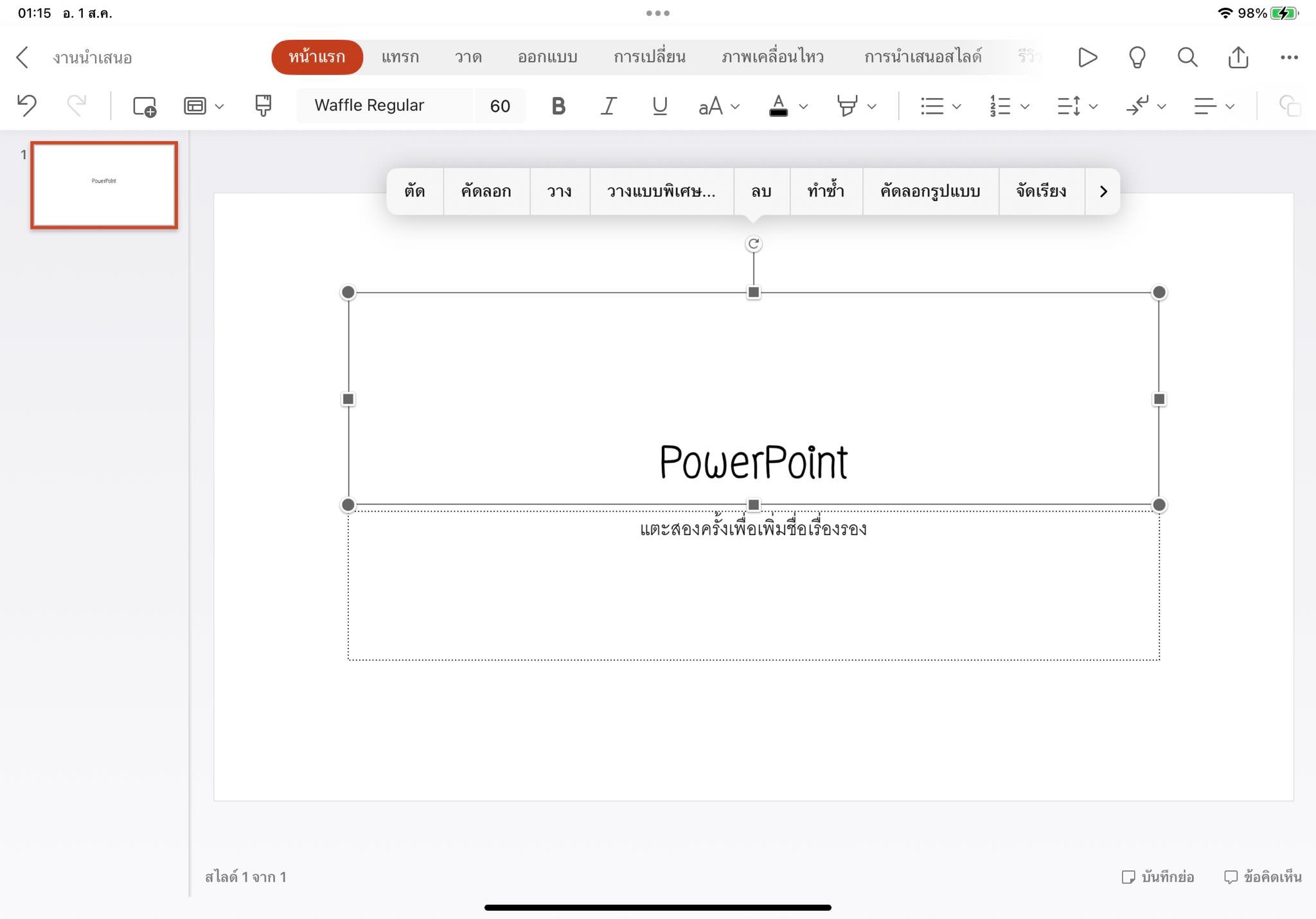 ดาว์โหลดฟอนต์ใหม่ลง ipad แต่ไม่สามารถใช้งานได้ใน powerpoint และ word
