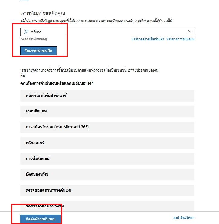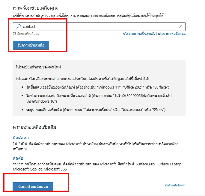 <--ติดต่อฝ่ายสนับสนุนของ Microsoft-->