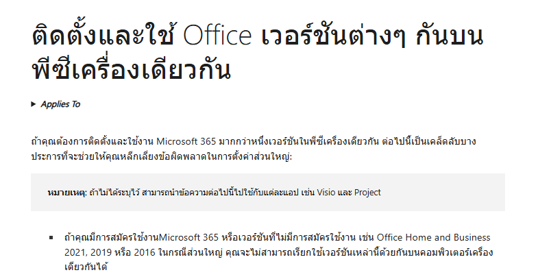 ติดตั้งและใช้ Office เวอร์ชันต่างๆ กันบนพีซีเครื่องเดียวกัน - ฝ่ายสนับสนุนของ Microsoft