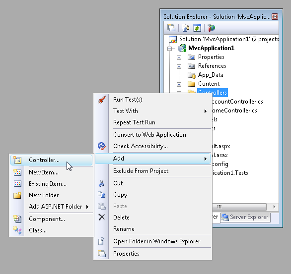 The goal of this tutorial is to explain how you can create new ASP.NET MVC controllers. You learn how to create controllers both by using the Visual Studio Add Controller menu option and by creating a class file by hand.