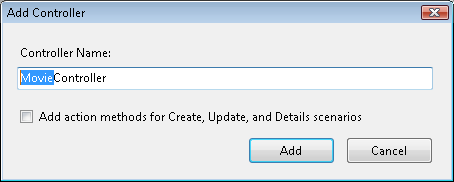 When the Add Controller dialog appears, enter the controller name MovieController (see Figure 4). Click the Add button to add the new controller.