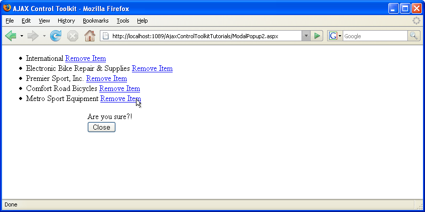 Then, every item in the data source is displayed with a button next to it that triggers the modal popup.