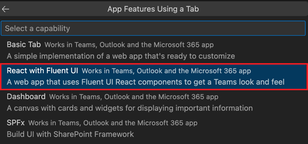 A Tab app provides the simplest framework, which you can further refine to use React with Fluent UI.