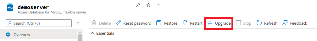 To perform a major version upgrade of an Azure Database for MySQL Flexible Server using the Azure portal, perform the following steps.
