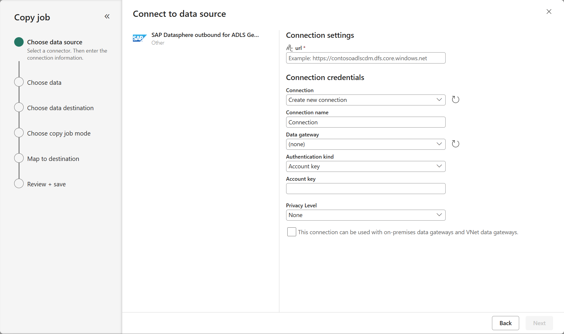 ส่วนนี้ครอบคลุมขั้นตอนการตั้งค่าที่คุณต้องการในการจําลองข้อมูลจากแหล่งข้อมูล SAP ของคุณไปยัง Azure Data Lake Storage (ADLS) Gen2, Amazon S3 หรือ Google Cloud Storage คุณจะใช้สิ่งนี้ในภายหลังเพื่อกําหนดค่างานคัดลอกใน Fabric